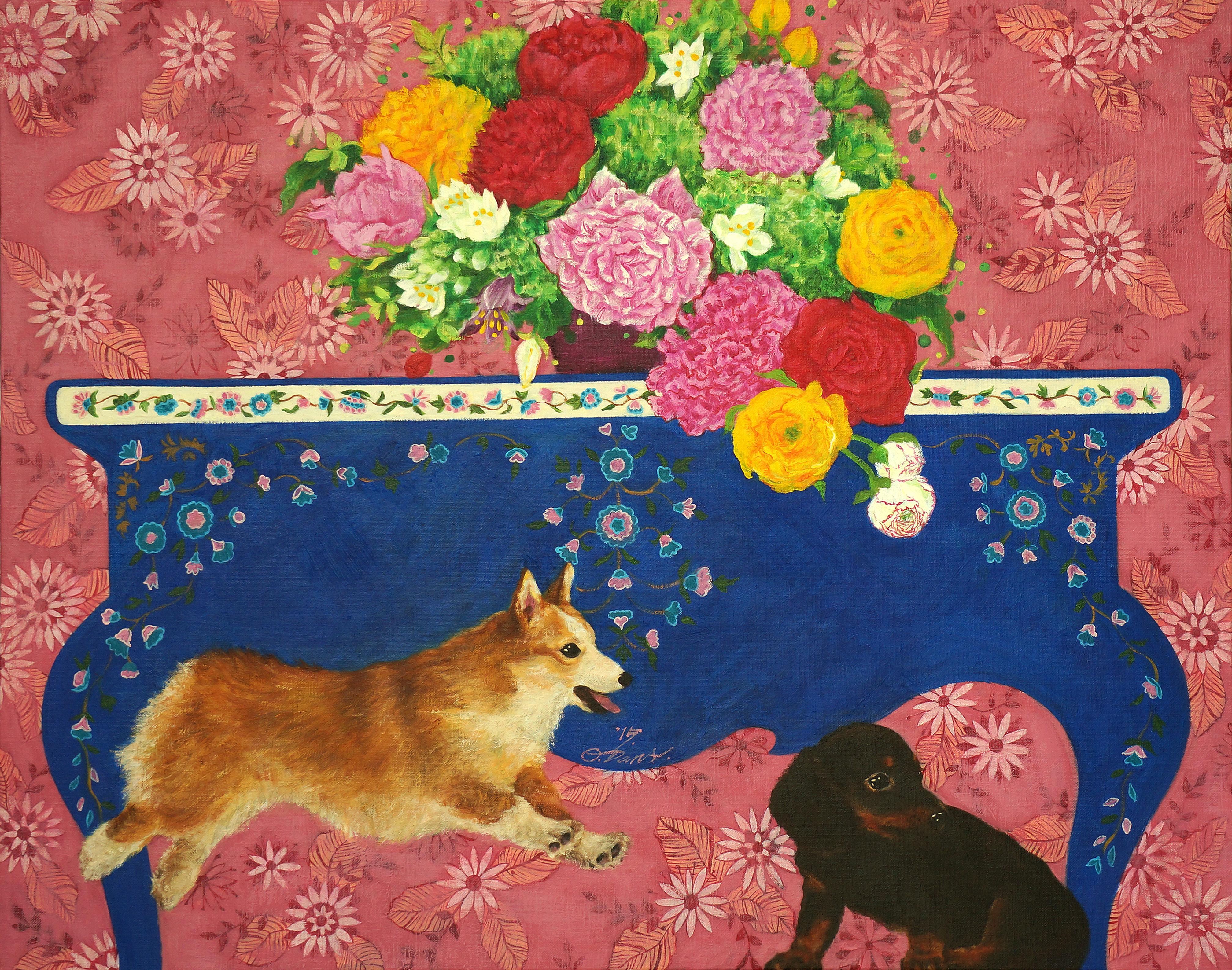 그런 질감은 강한 색채와 화려한 문양에 가려져 자칫 가벼워 보일 수 있는 화면에 깊이감을 더해주는 역할을 한다.